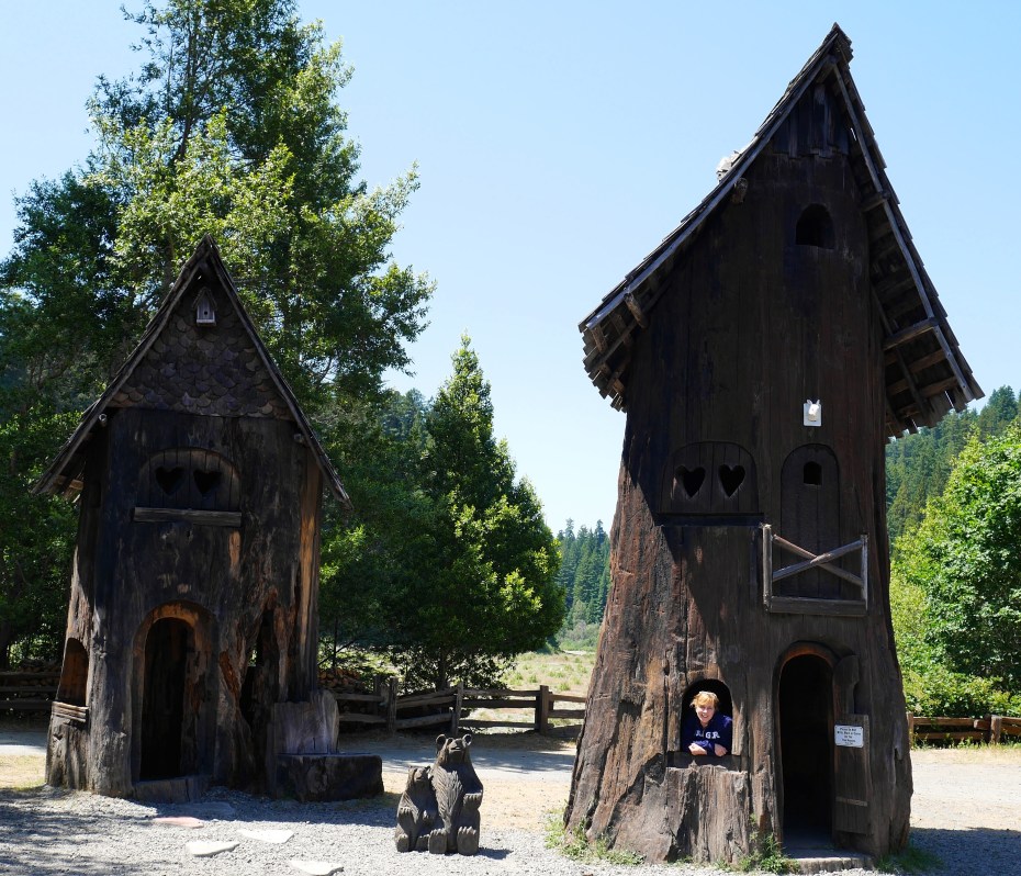 From Bandon, we continued south on 101 enjoying our last views of the Oregon coastline. We stopped for lunch in Eureka, California, and then entered the redwood forest. Although we have gotten somewhat used to big trees living in Washington state these past three years, we were still stunned by the groves of magnificent redwoods! Claire has fond memories from her childhood of seeing a car drive through a hole cut in a giant, living redwood tree. Apparently there are three such trees in the world, and we had to take the turn off’s to see at least two of them. Disclaimer: unless you are driving a very small car, you would be best advised NOT to drive through. I wasn’t even temped to try and get our pickup truck through the hole.