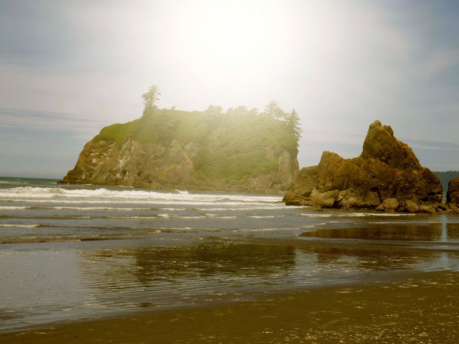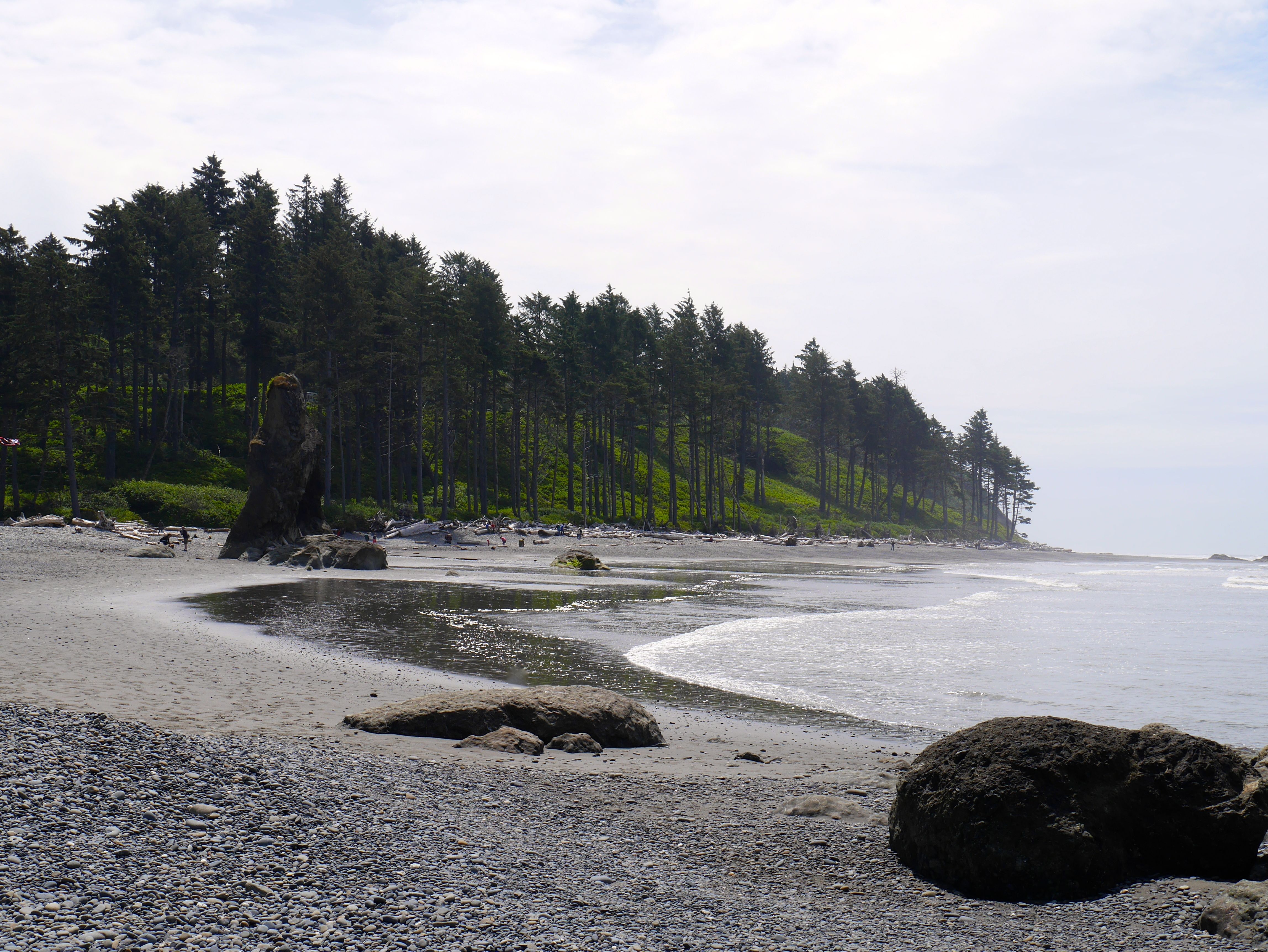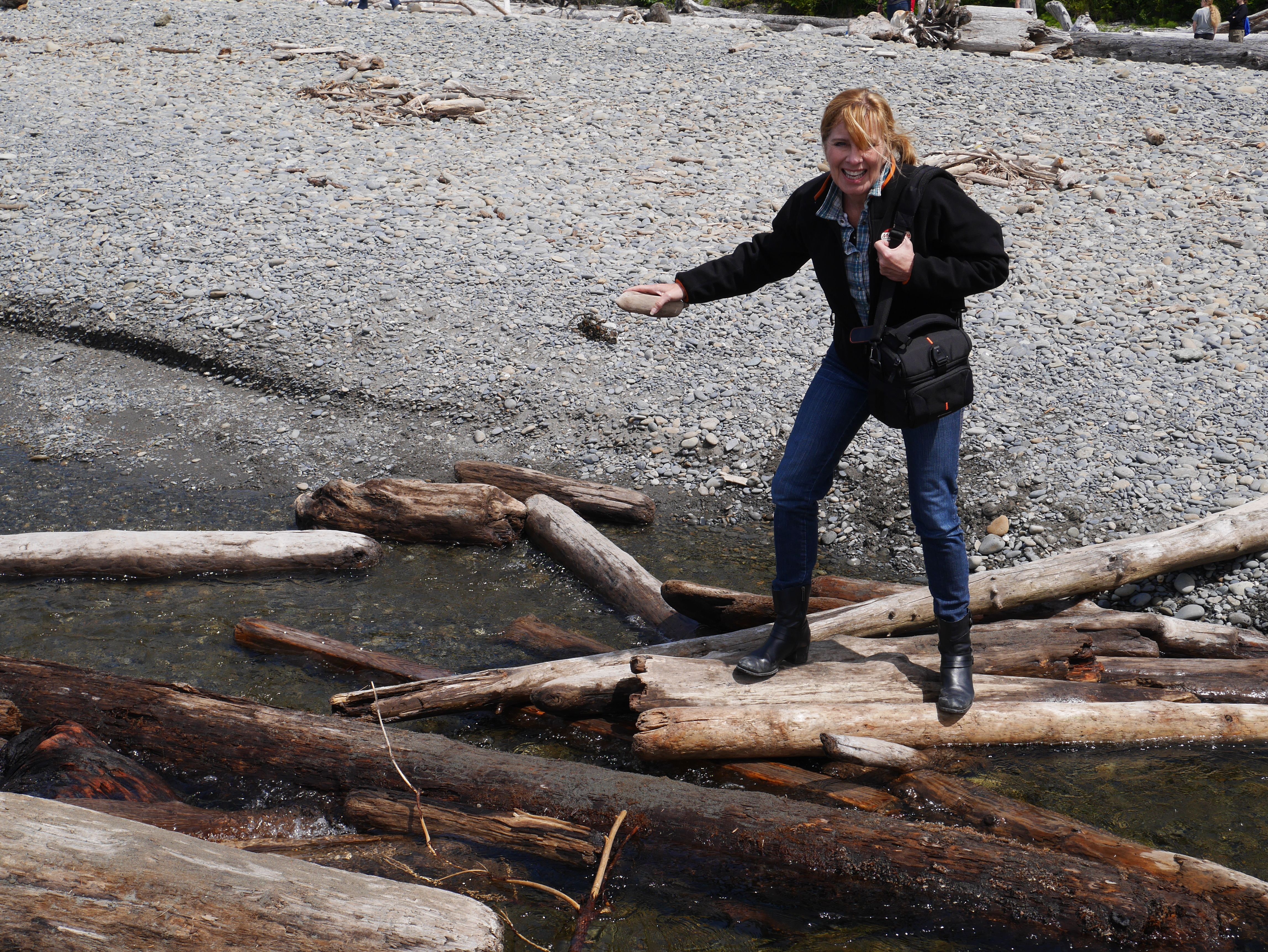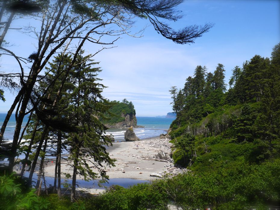 We headed south through Olympia and then out to the coast. The drive up the coast was nice, but we got a bit spoiled driving down the Oregon/California coast. We stopped at Ruby beach. It was a beautiful spot. My only disappointment is that like most scenic spots we have experienced in Washington State there were more people than you would expect in a relatively remote location. The parking lot was full, and there were more than 50 people on the beach. We spent a little time strolling the beach, climbing in the rocks, and searching through the driftwood, and then headed up the coast.